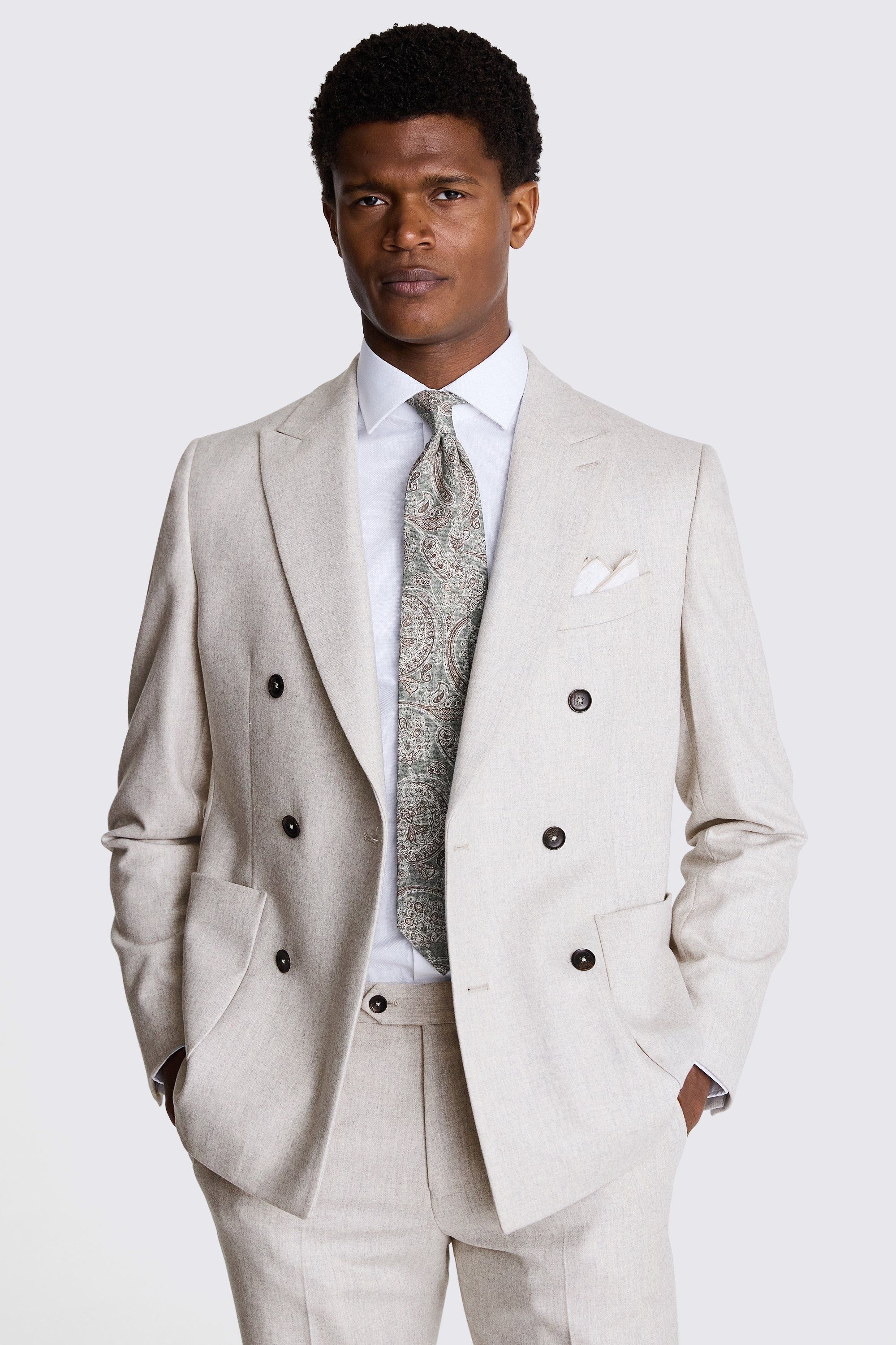 Crafted in pure wool made in northern Italy, this tailored-fit suit will revive your formal options for the season. In a light-grey colour, this suit is ideal for pairing with deep hues like burgundy or forest green for a fun contrasting look.