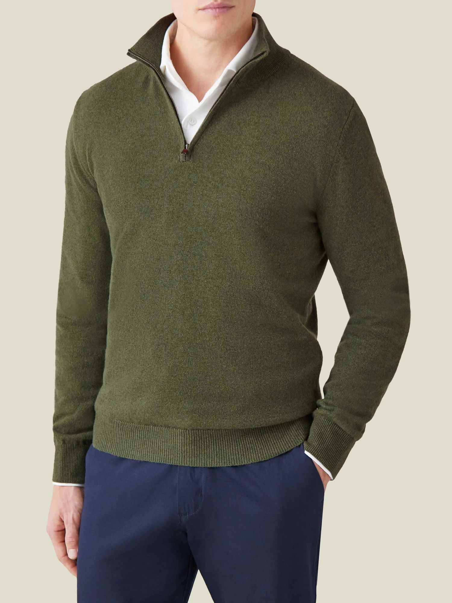 This zip-up cashmere jumper fits like a glove and looks equal parts polished and casual. When in the office, wear with with a shirt underneath, or on a Sunday at the pub style with a a simple t-shirt underneath.