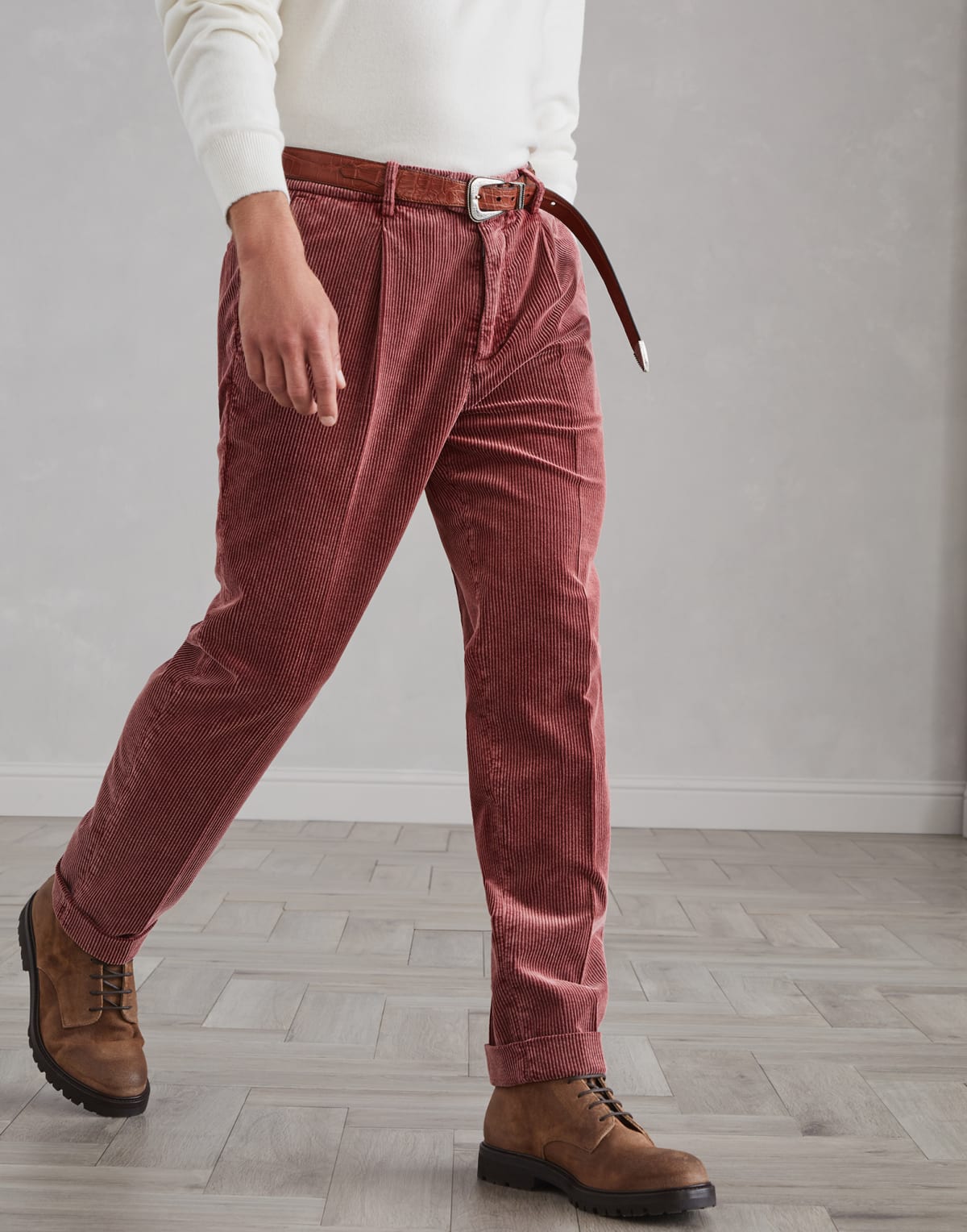 These casual and elegant cotton corduroy leisure trousers boast of soft proportions in the seat and a slightly low waist for a more relaxed feel that can be dressed up with ease.