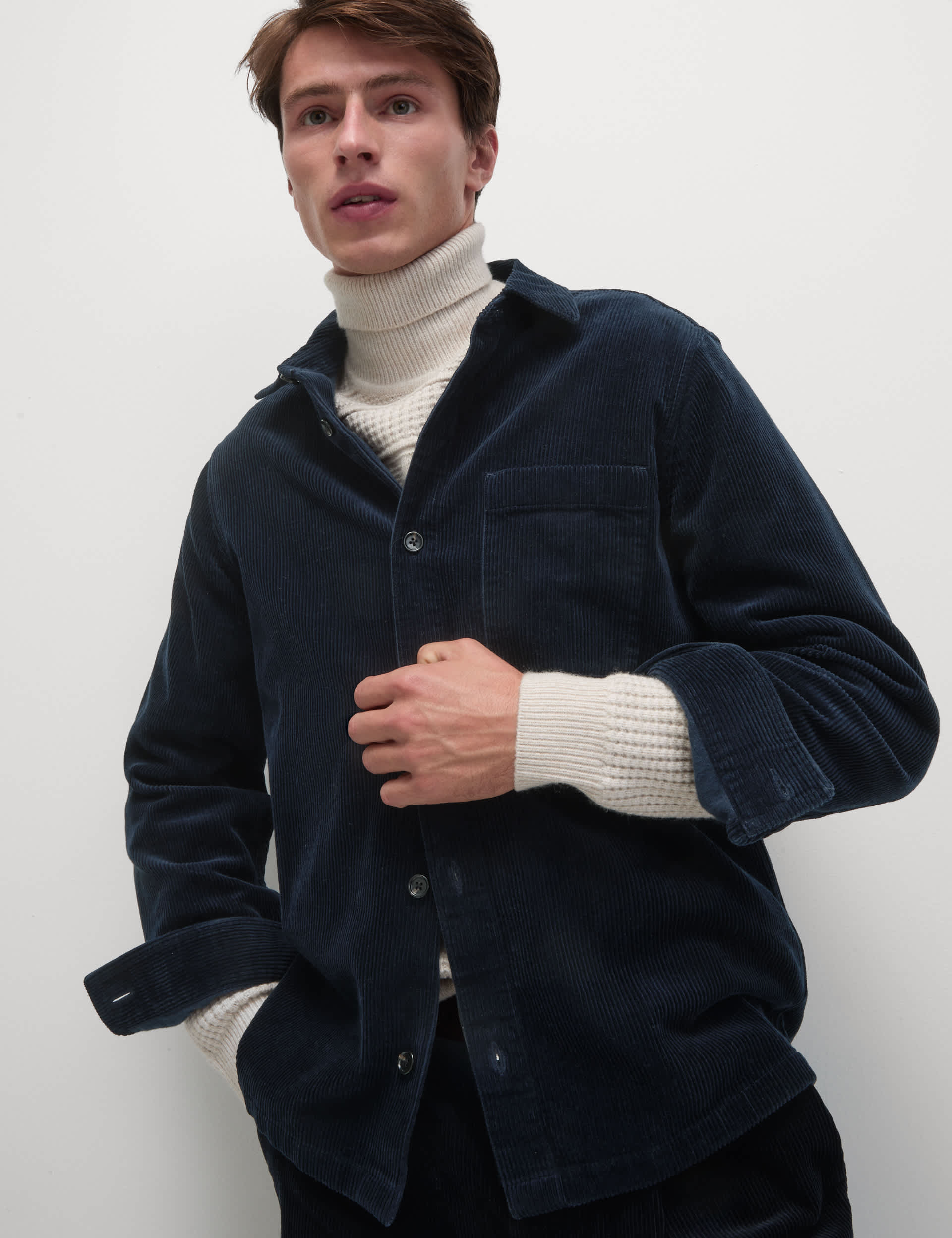 Honestly, we'll never tire of a good shacket. Made from pure cotton corduroy, this overshirt is a comfortable and stylish choice for layering, even over a chunkier knit.