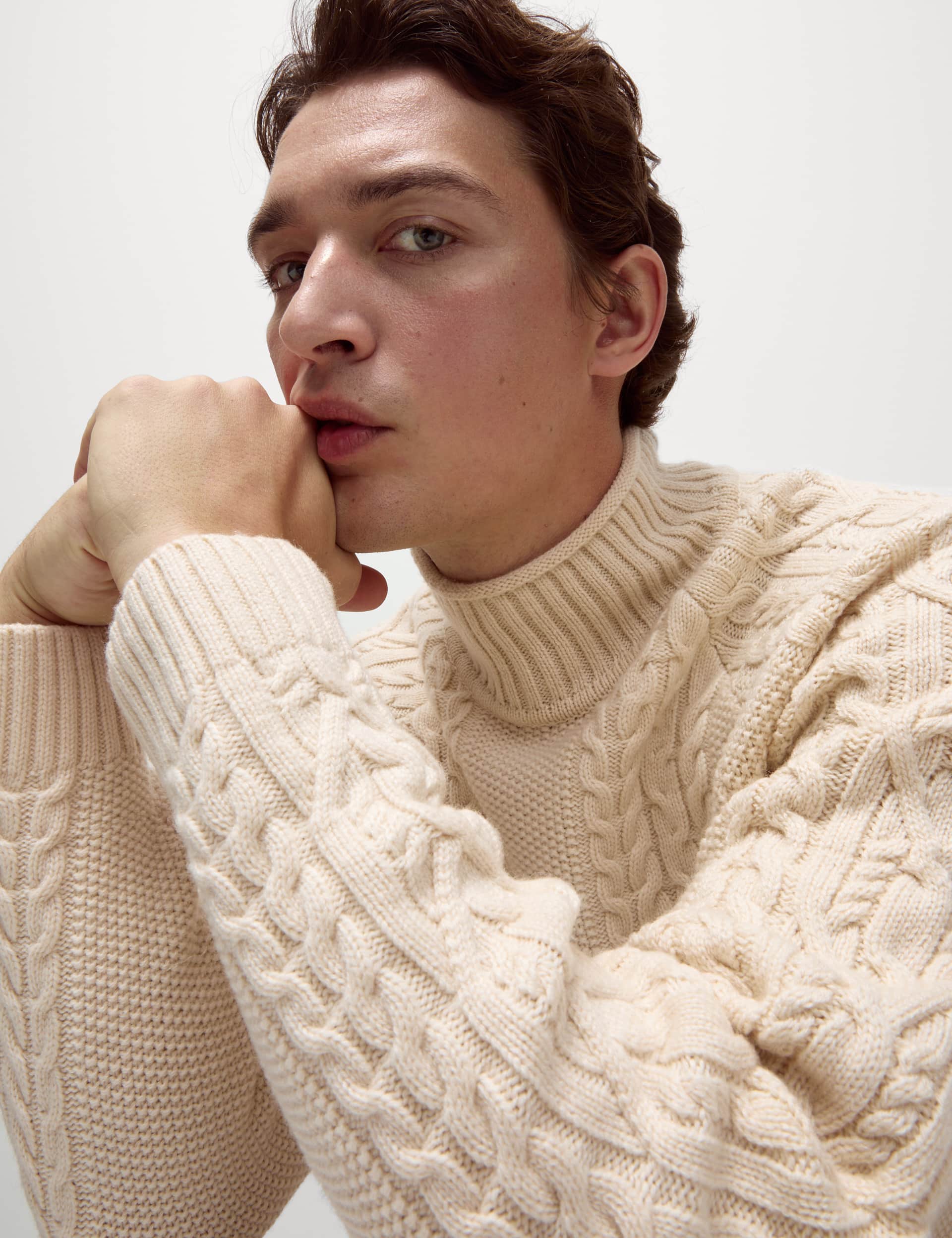 M&S Men's Lambswool Blend Cable High Neck Jumper