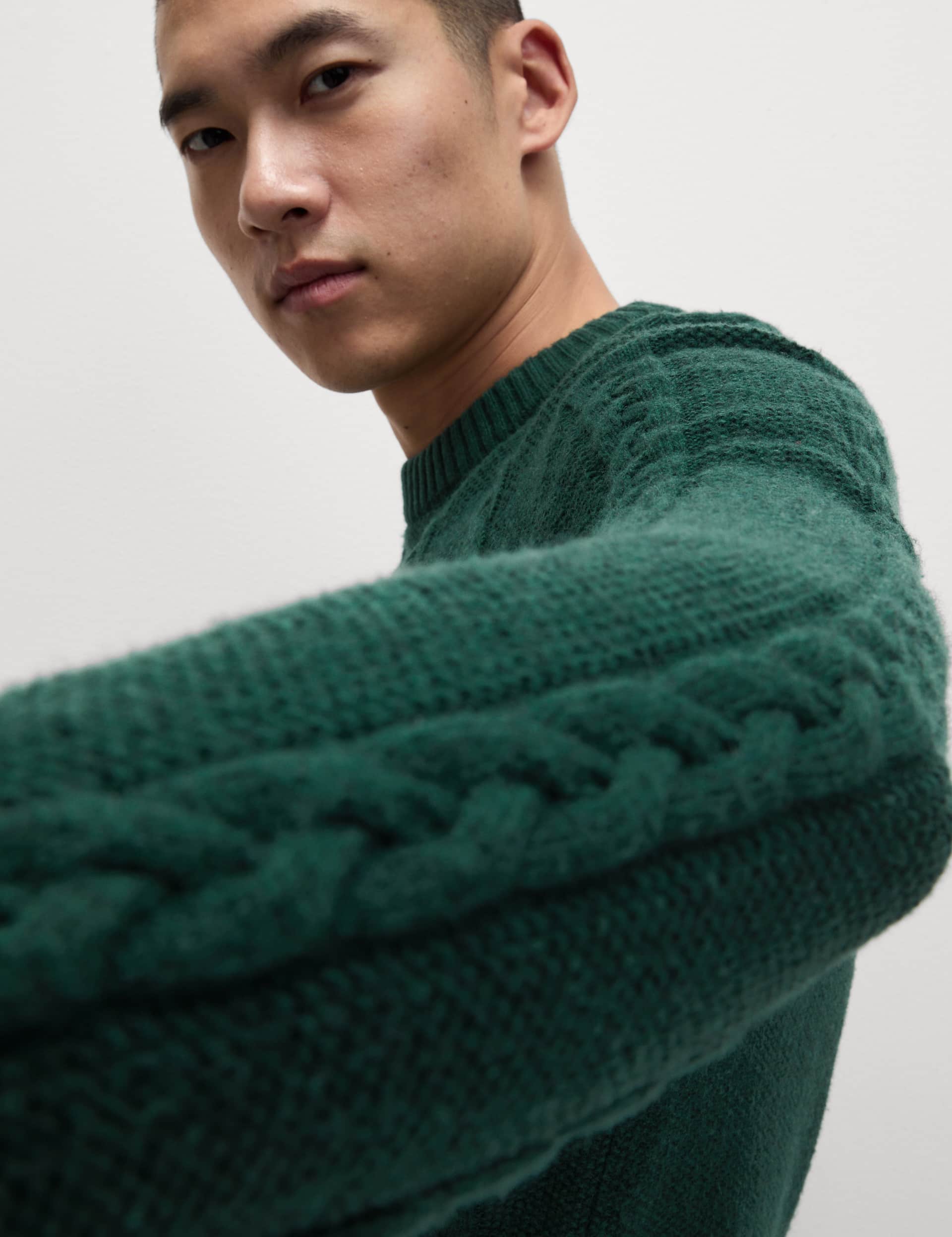 M&S Men's Lambswool Blend Cable Crew Neck Jumper