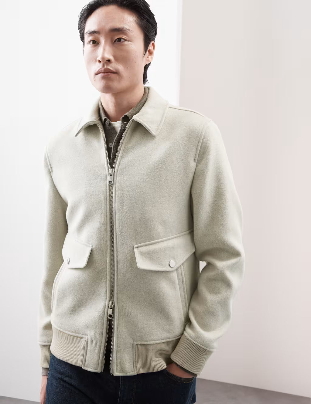 M&S Men's Faux Leather Aviator Jacket