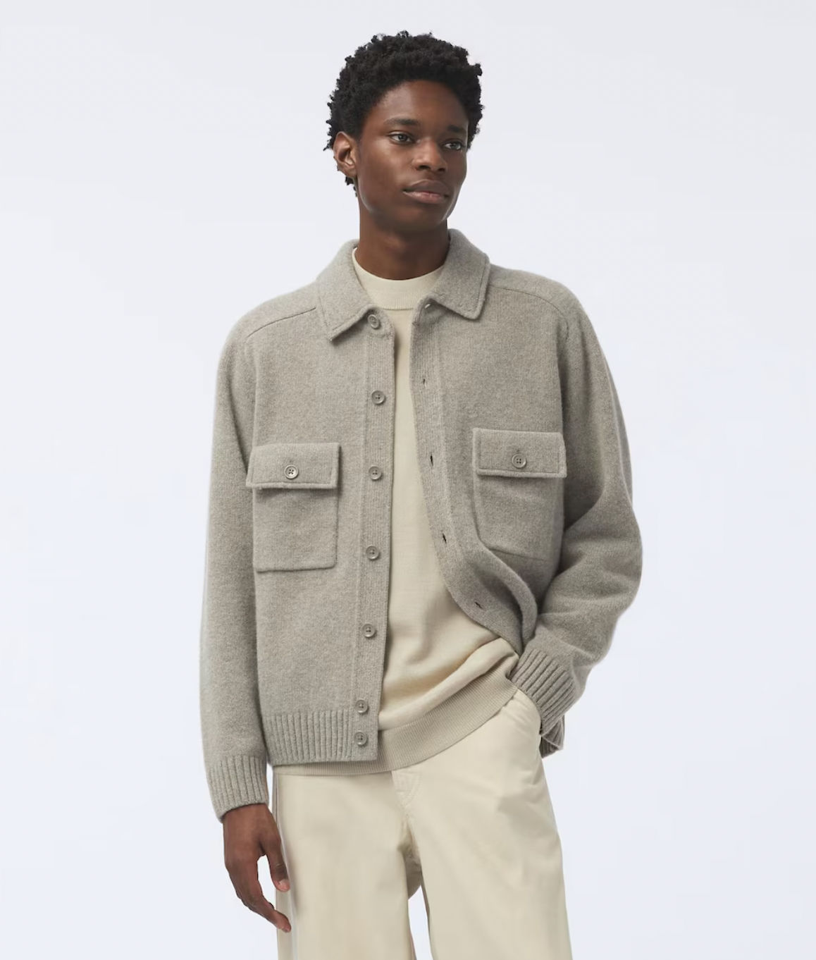 This workwear-inspired knit jacket with buttons and flap pockets isn't your average jumper. Great over a tee on a warmer day, or layered over fine knits on days that demand a bit more, if the cardigan look just isn't your bag, this one will be.