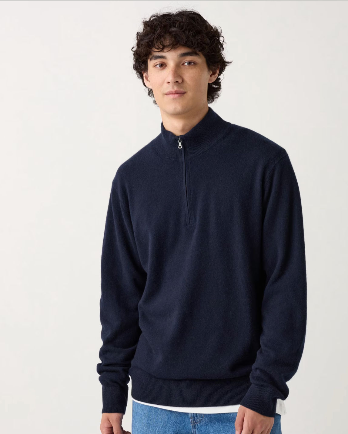 Every man needs a decent half zip. Worn alone zipped right to top for a cool, casual look with denim or unzipped over a shirt for the office, luxurious cashmere gives this particular version an especially lovely feel against the skin.